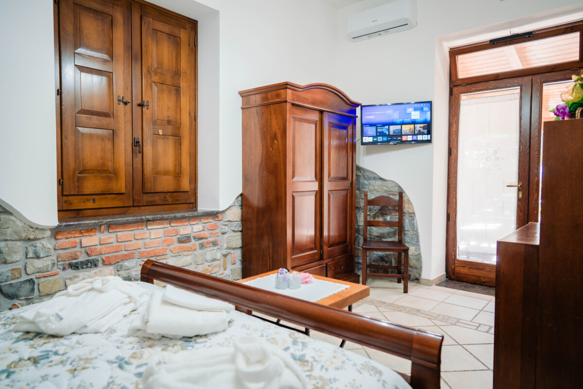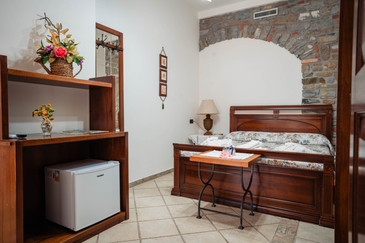 The rooms, simple and pleasant, are all double superior with third extra bed (or bunk bed) option, terrace, with a sea or a garden view.