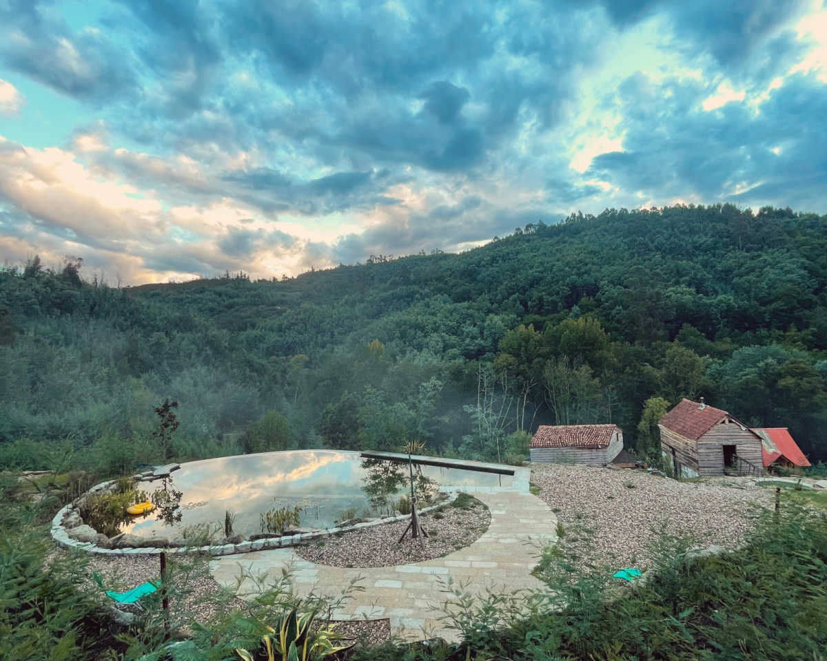 An eco- retreat center lying in a majestic valley where two rivers meet. Stay in our sacred geometry accommodation, enjoy our natural swimming pool, wood-fired sauna, hot tub, sweat-lodge & more.