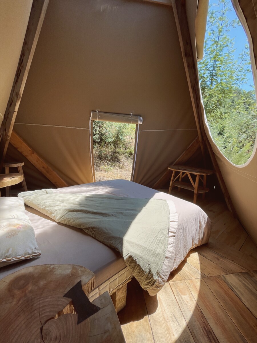 Immersed in nature, we have worked to complement the land's beauty by building from solely natural materials. Our retreat center offers 15 sacred geometry inspired accommodations , a cabin and a granite room. Private accommodation is our standard, 18 total. If shared, there is a possibility to have more capacity.