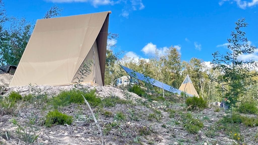Solar panels for electricity, our own spring for drinking water, water mines for washing water