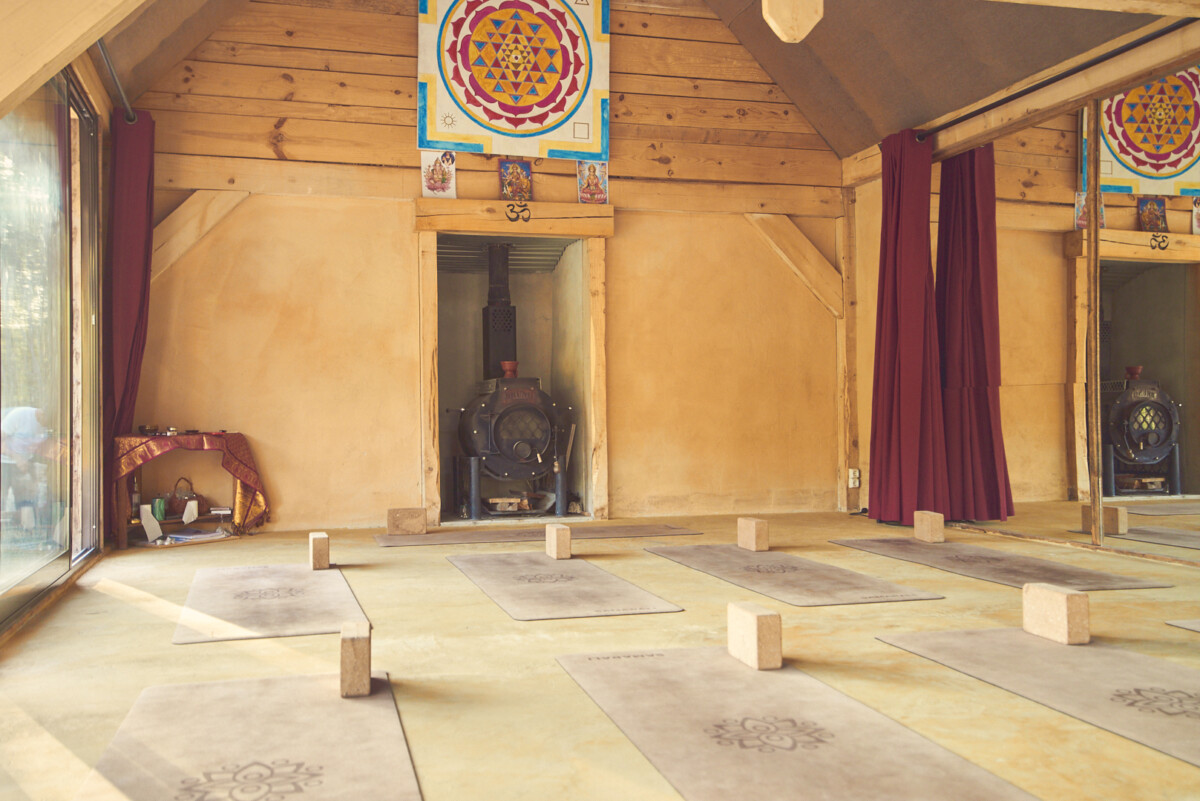 Indoor Yoga Shala: 12 for yoga & more for seated practice.