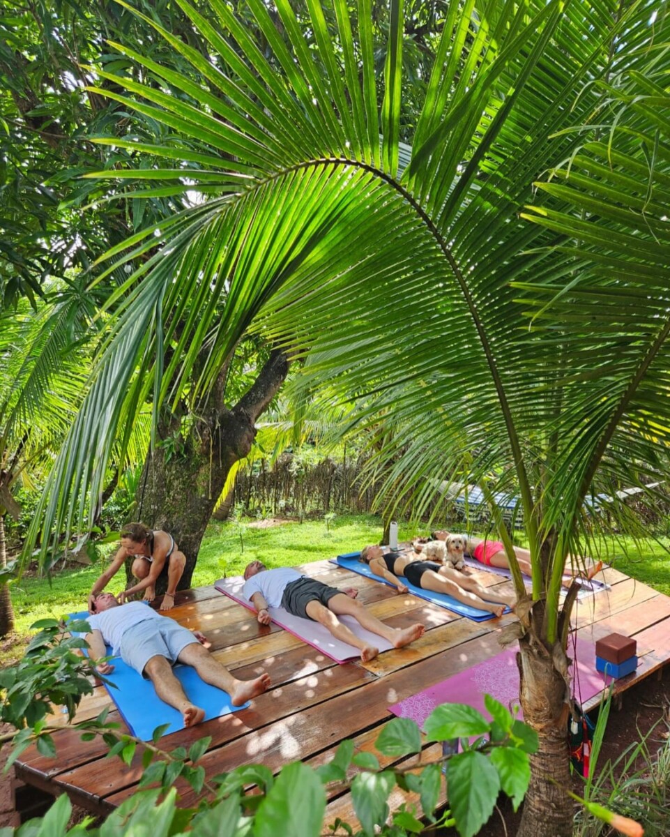 Our hotel features two yoga decks, each surrounded by lush gardens with mango and palm trees. The open space yoga deck offers a natural, airy environment perfect for sun salutations and evening meditations. The covered yoga deck provides a sheltered, serene space ideal for workshops and classes, allowing practice in any weather while staying connected to the tranquil beauty of the island.