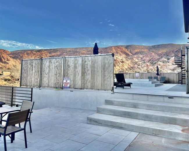 Two patios with BBQ grills, alfresco dining, 2 gas fire pits, and panoramic desert + La Sal Mountain views.