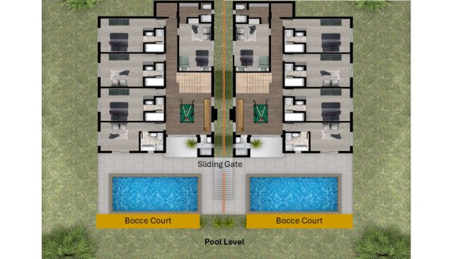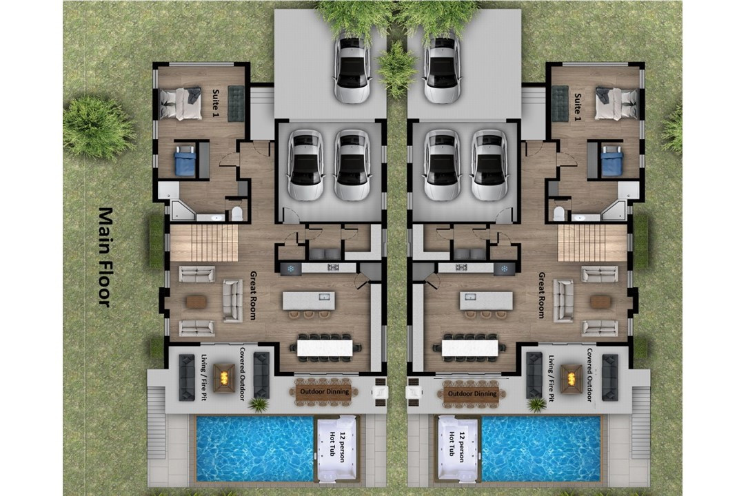 Two brand-new six-bedroom, eight-bathroom luxury homes built side by side and designed specifically for large groups. Each home offers indoor/outdoor living spaces, infinity pools, hot tubs.