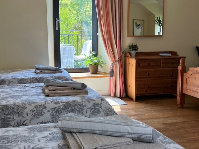 Garth Barns is at the heart of over 200 acres of organic land, with ancient and new woods, open hill and cascading streams.