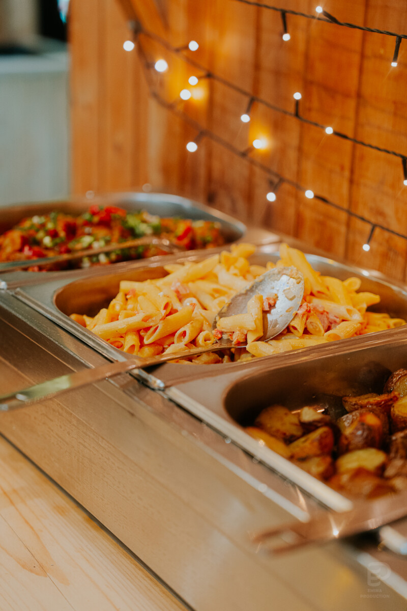 CateringAt Glamping Tago, The Yurt Restaurant presents a buffet-style selection of local vegetarian and European dishes.