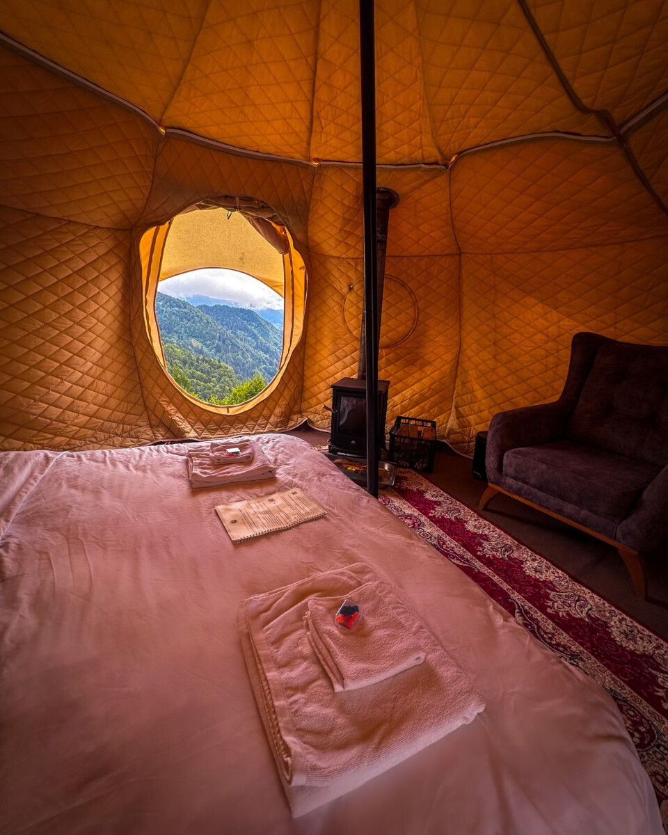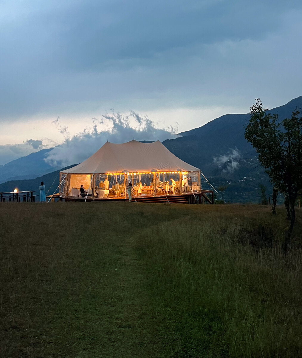 Glamping Tago, located on a mountain peak in Georgia, is a place that stands out for its extraordinary nature and views, which makes it special for activities such as yoga, meditation, breathing exercises, sound healing, and other retreats. Our glamping hosts several retreats annually since this place is ideal for various practices, and we have everything needed to accommodate our guests' preferences to the maximum.