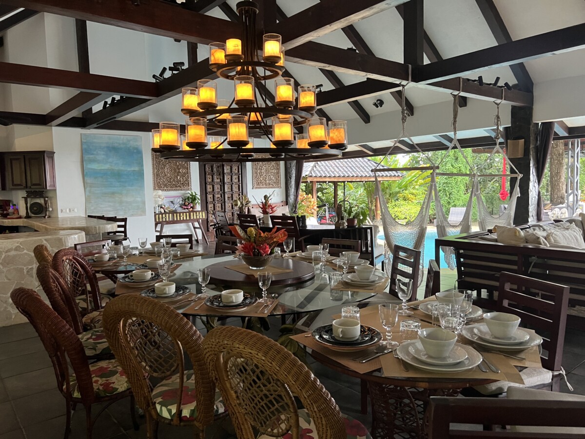 Kitchen and Dining roomHamsa Villas offers a fully equipped kitchen and open-air dining area with a main table for up to 18 guests. Extra tables available. Includes Lady Suzanne—perfect for shared, family-style meals.