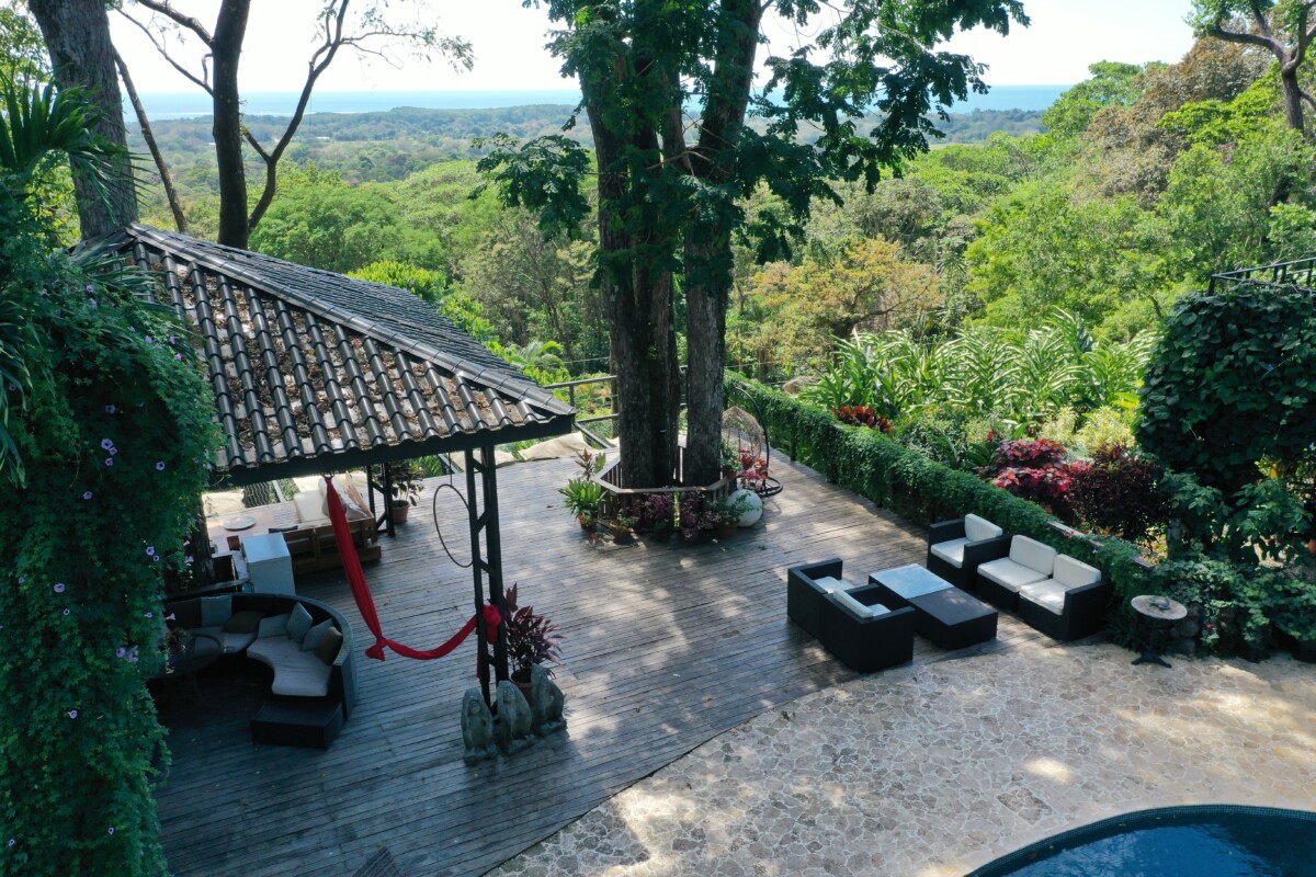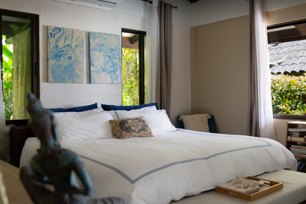 The villa comfortably accommodates up to 18 guests across beautifully appointed bedrooms, each with cozy beds, soft linens, and jungle or ocean views. A large open-concept kitchen and dining area invite community meals, while expansive decks, a yoga platform, and shaded lounges create space for rest, movement, and connection.