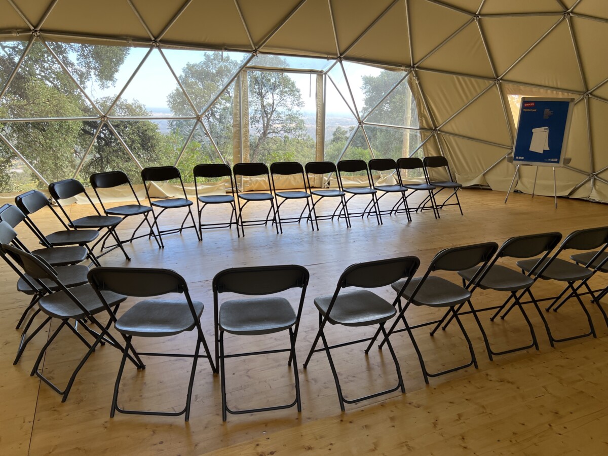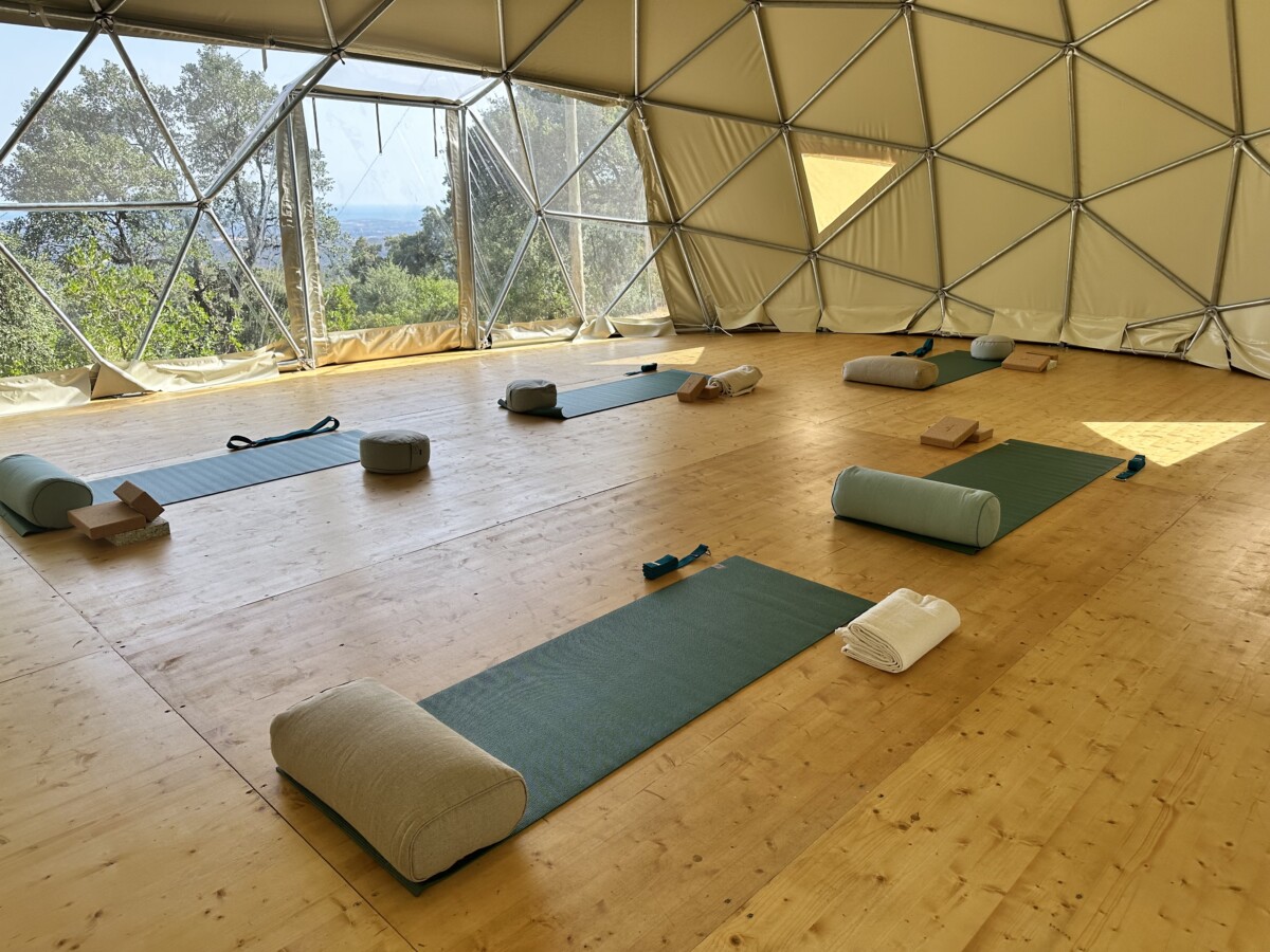Our 12x8 meter dome is a serene, light-filled space perfect for yoga, meditation, and group sessions. Fully equipped with yoga mats, blocks, straps, bolsters, and blankets, it provides everything needed for a seamless practice. Surrounded by nature, the dome offers a peaceful atmosphere for deep focus, relaxation, and transformation, making it an ideal setting for any retreat.