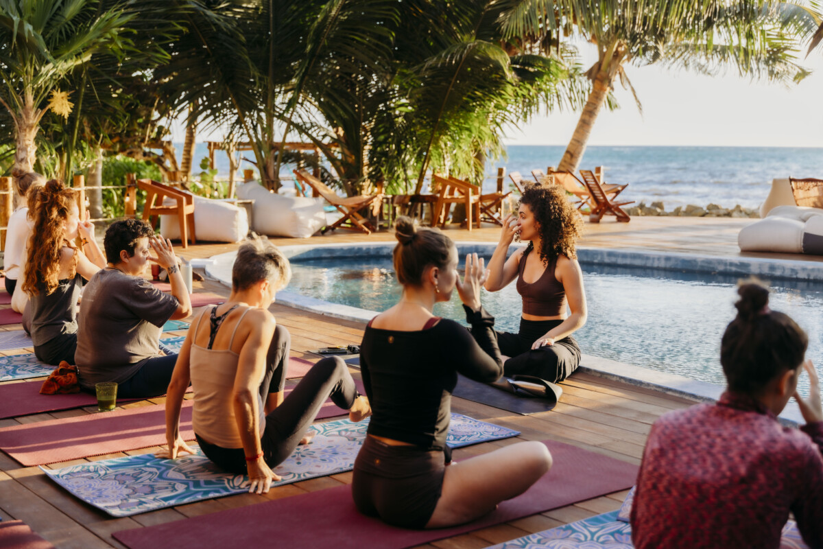 Mahai Retreat is an eco-luxury beachfront sanctuary in Mahahual, Mexico, offering exclusive group retreats with yoga spaces, nourishing cuisine, and a deep connection to nature.