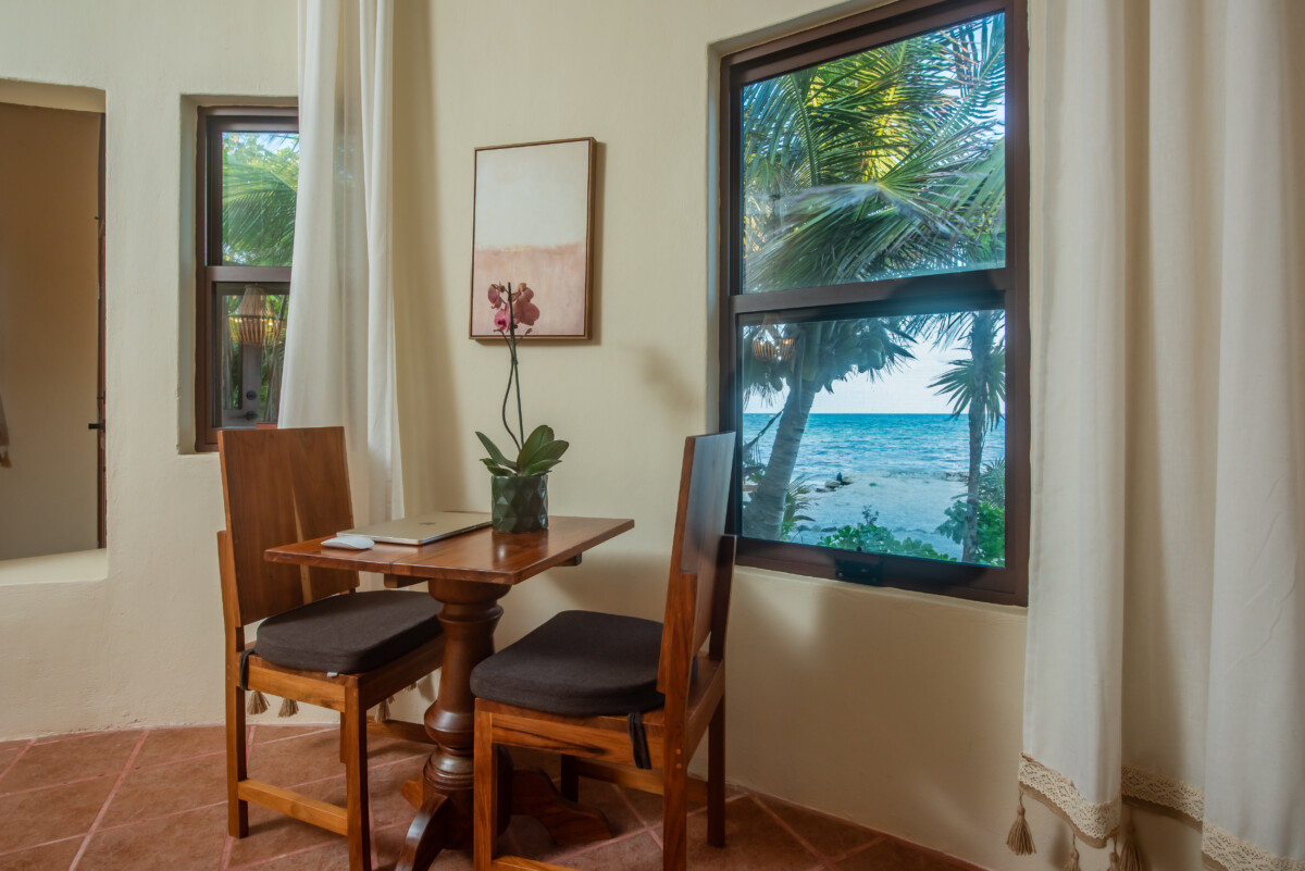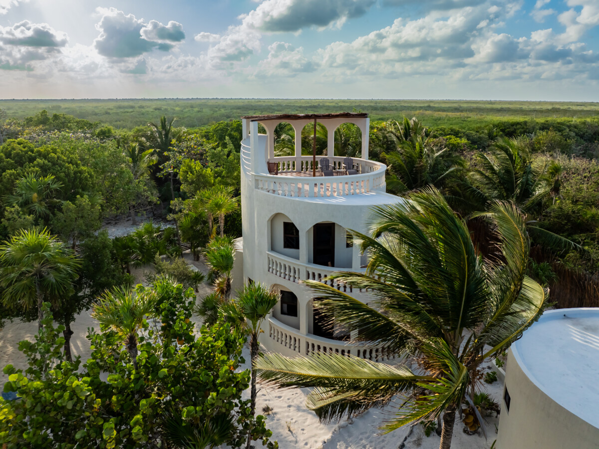 Mahai Retreat sits on a private beachfront in Mahahual, Mexico, along a quiet sand road driven along the sea and mangroves, offering a tranquil eco-luxury setting for group retreats