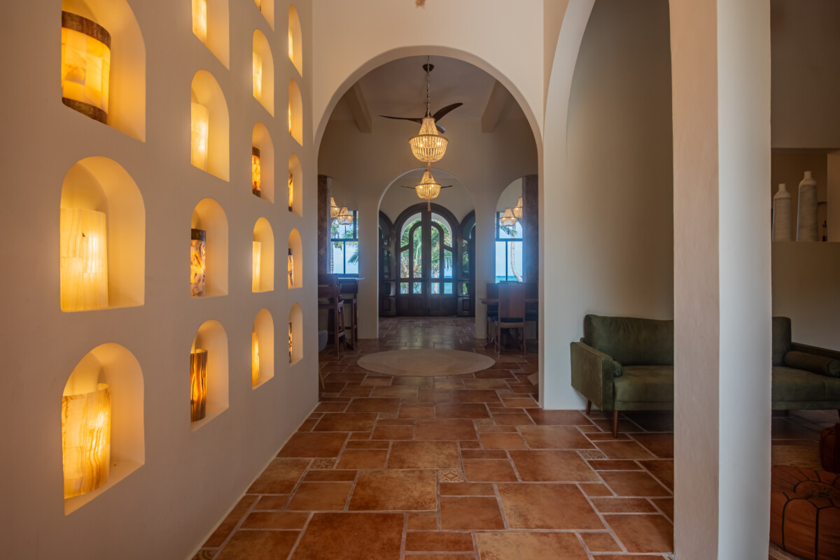 Our spacious circular yoga room overlooks the Caribbean Sea, offering breathtaking views and natural breezes. With polished chukkum floors, and floor to ceiling windows, our flexible space can be used for yoga, meditation, workshops, or seminars. It creates an inspiring and tranquil setting where groups can gather, move, and connect deeply with nature.