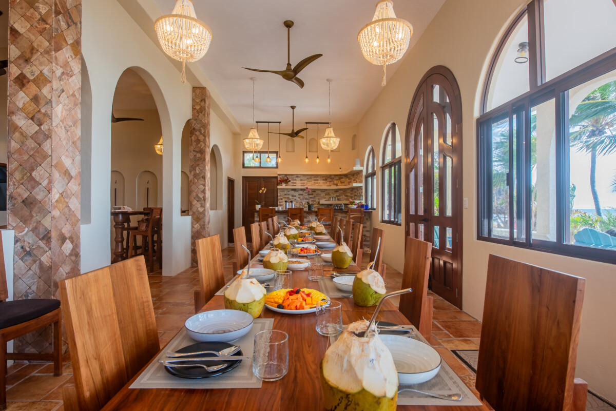 Our beautiful dining room fosters community with shared tables and ocean views with seating for up to 40. The adjoining kitchen prepares fresh, authentic Mexican dishes tailored to each group’s menu