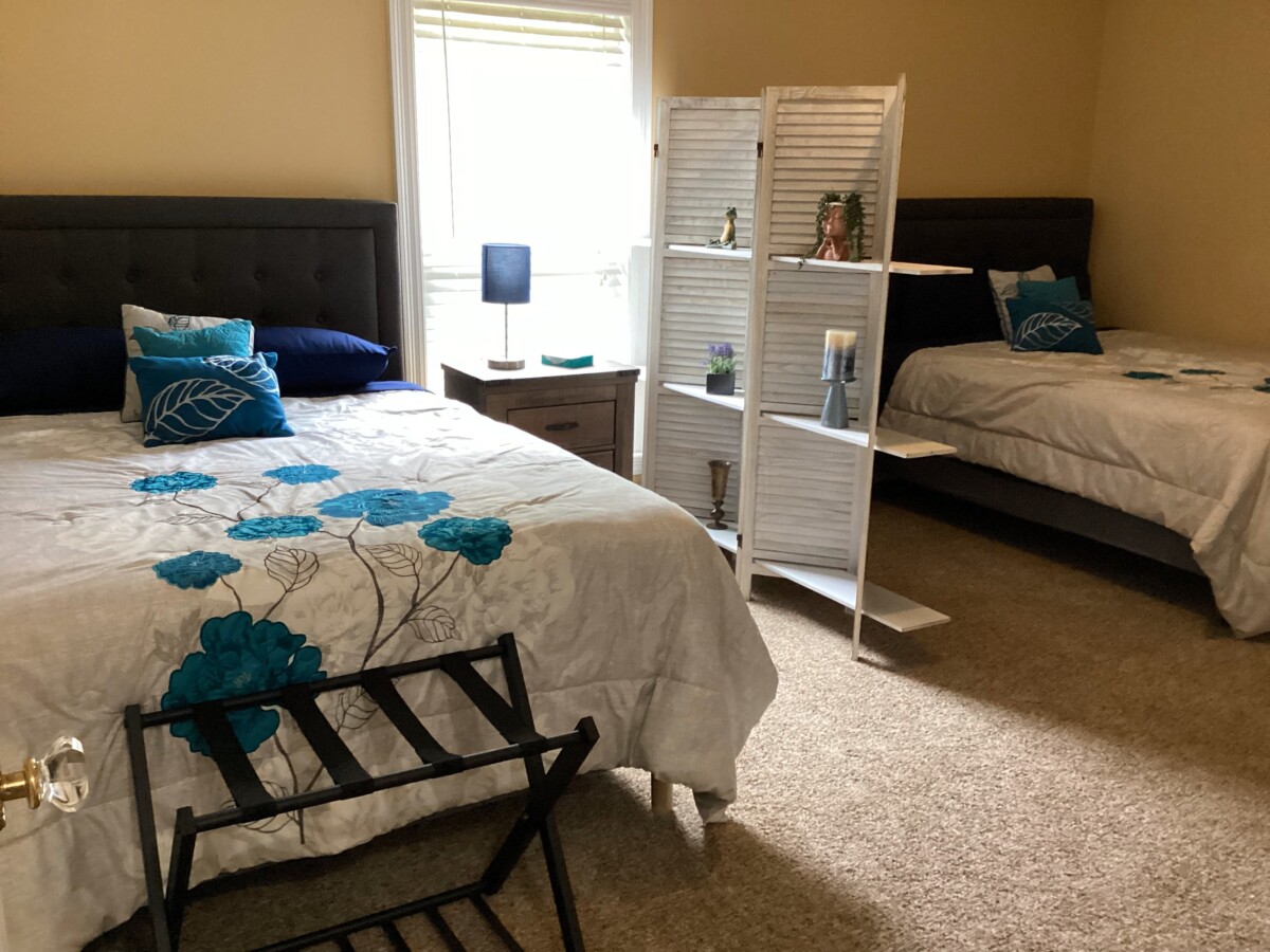 The main house accommodates up to 30 guests across 9 bedrooms and 6 bathrooms, with flexible sleeping arrangements ideal for group comfort. Facilitators appreciate our thoughtful accommodations, including private rooms with workspace or patio access.