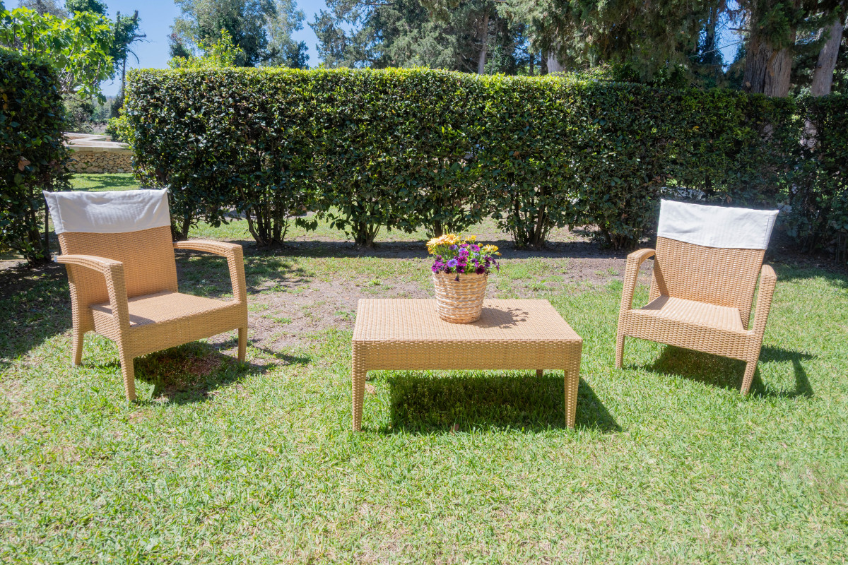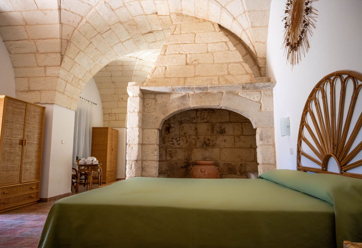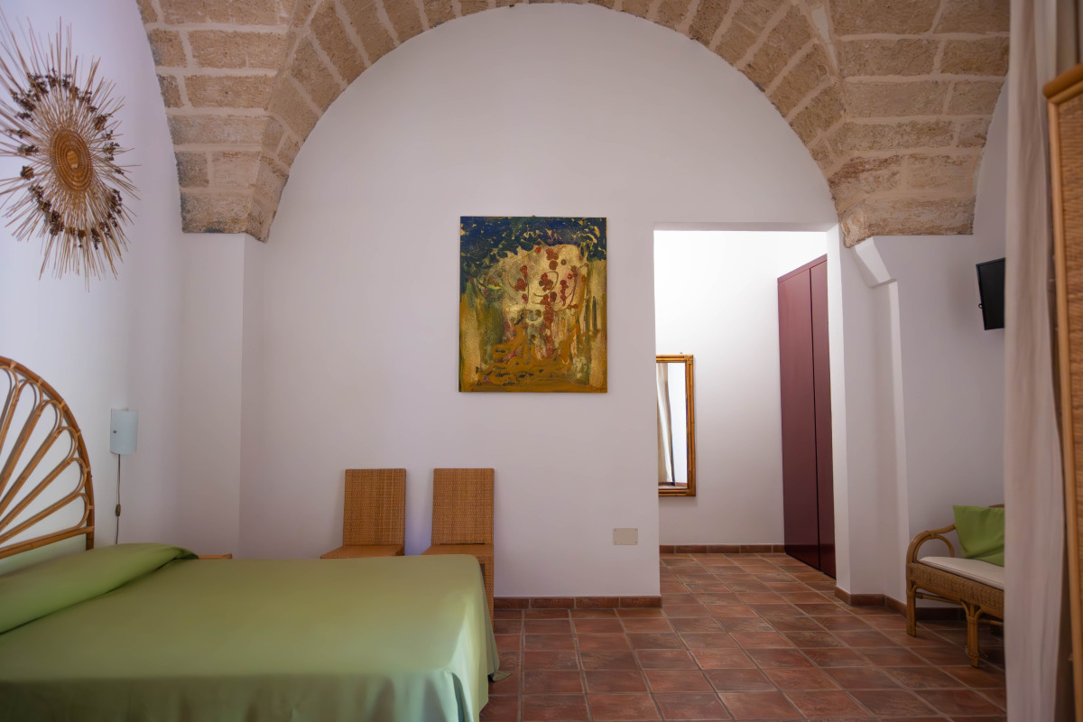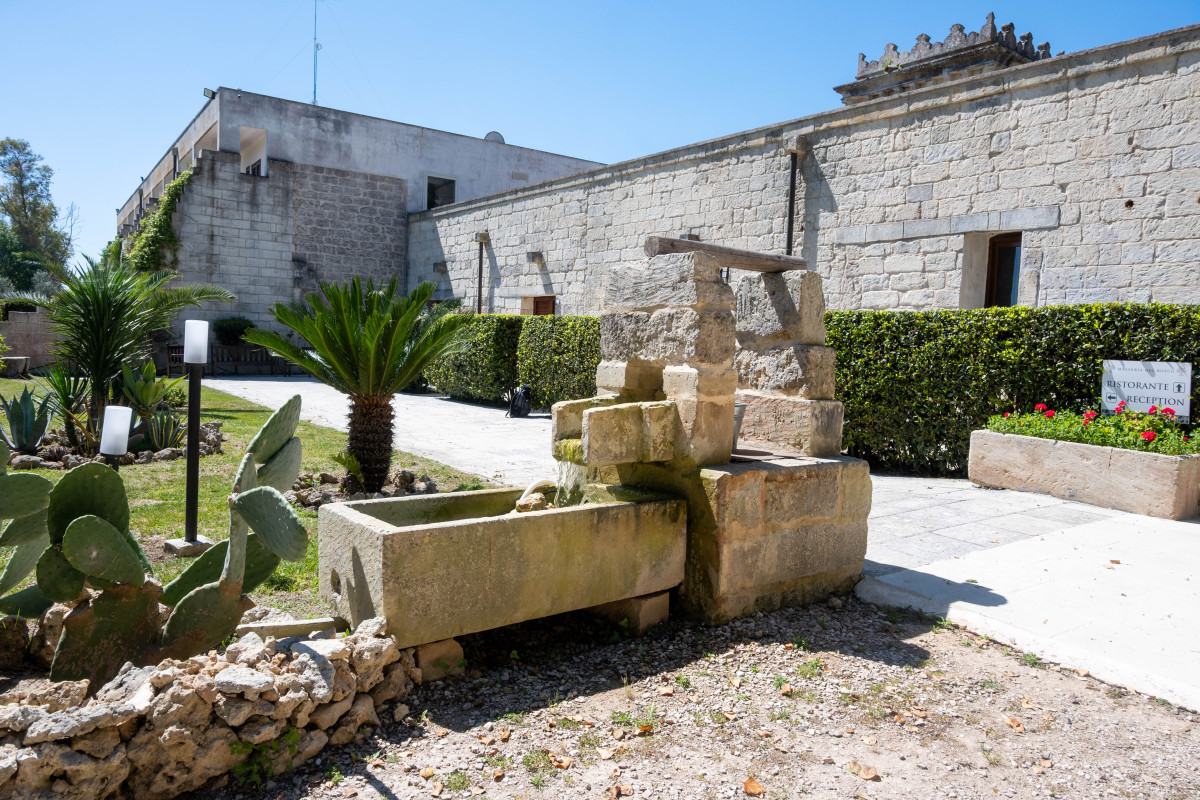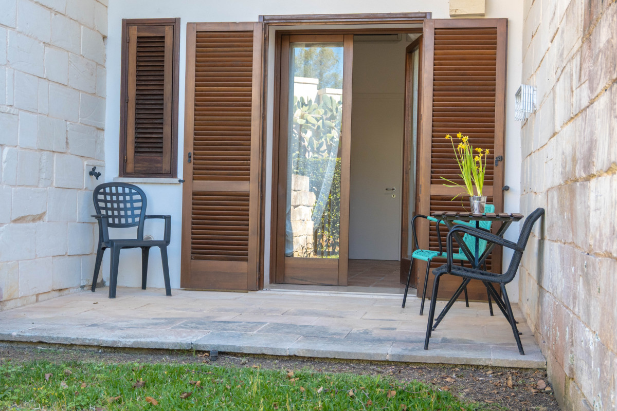 Ground-floor rooms feature private furnished gardens, while first-floor rooms have spacious furnished balconies. The masseria offers numerous shaded outdoor areas with seating, perfect for reading, relaxing, or enjoying time by the pool.