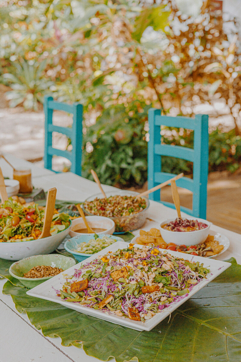 Our catering offers fresh, flavorful meals inspired by Mediterranean, Thai, and Indian cuisine, using local and organic ingredients, with accommodations for vegan, Ayurvedic, gluten-free, and others.