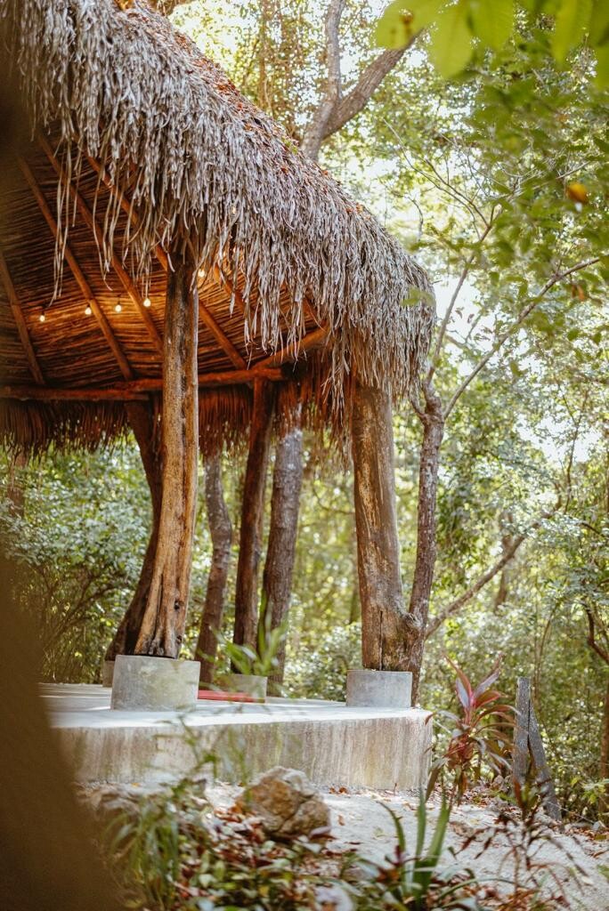 Naya follows eco-conscious practices including greywater systems for garden irrigation, construction using rock sourced from the land, and preservation of all old-growth trees to protect the jungle canopy and wildlife.