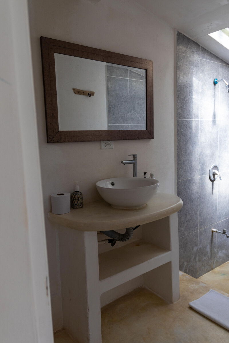 All six guest rooms include private ensuite bathrooms with showers and reliable hot water, offering comfort and privacy while staying immersed in a natural, jungle setting.