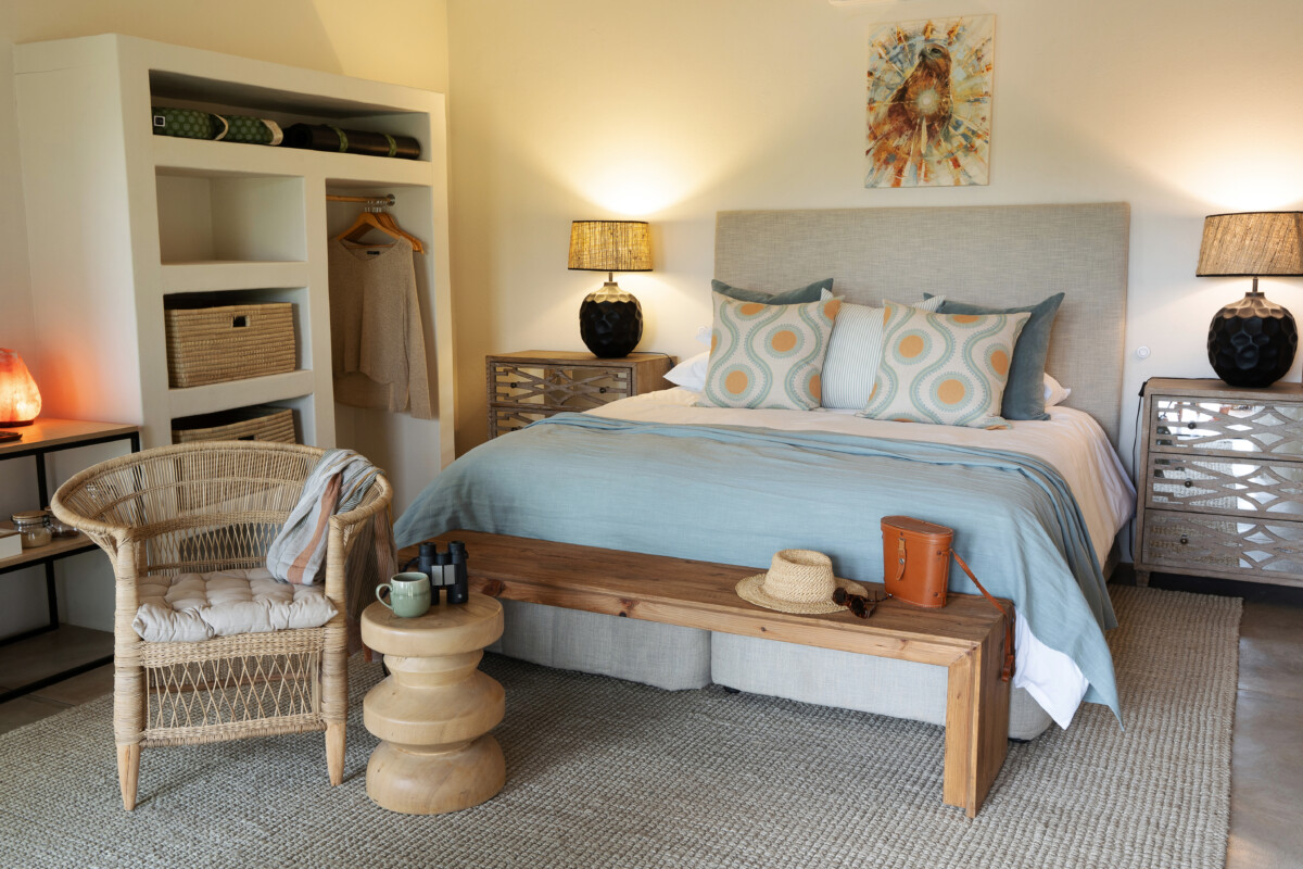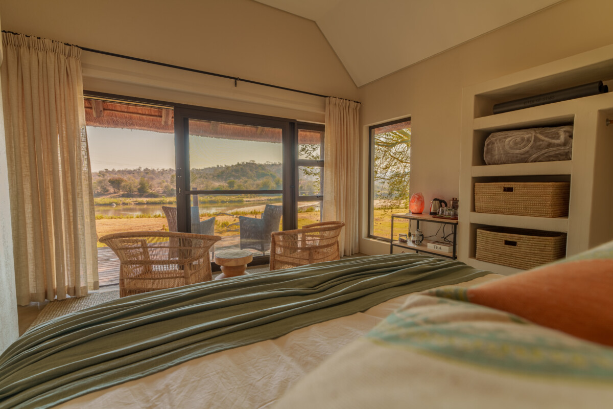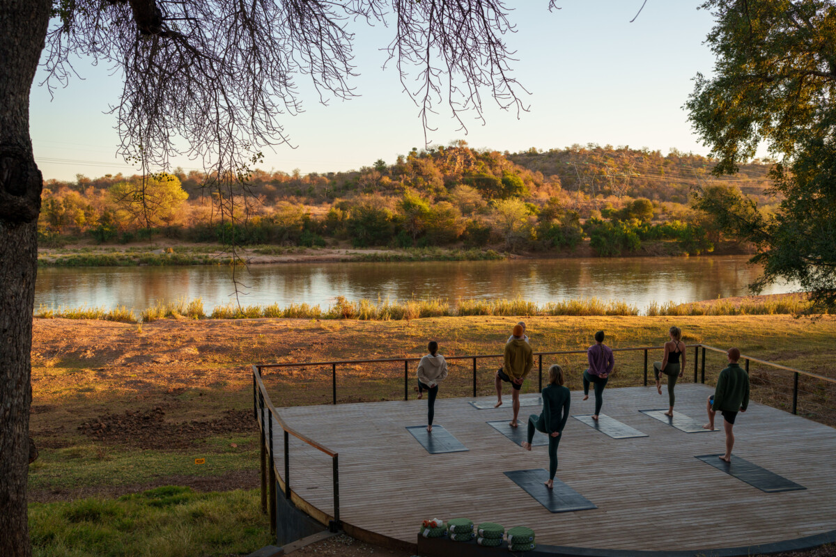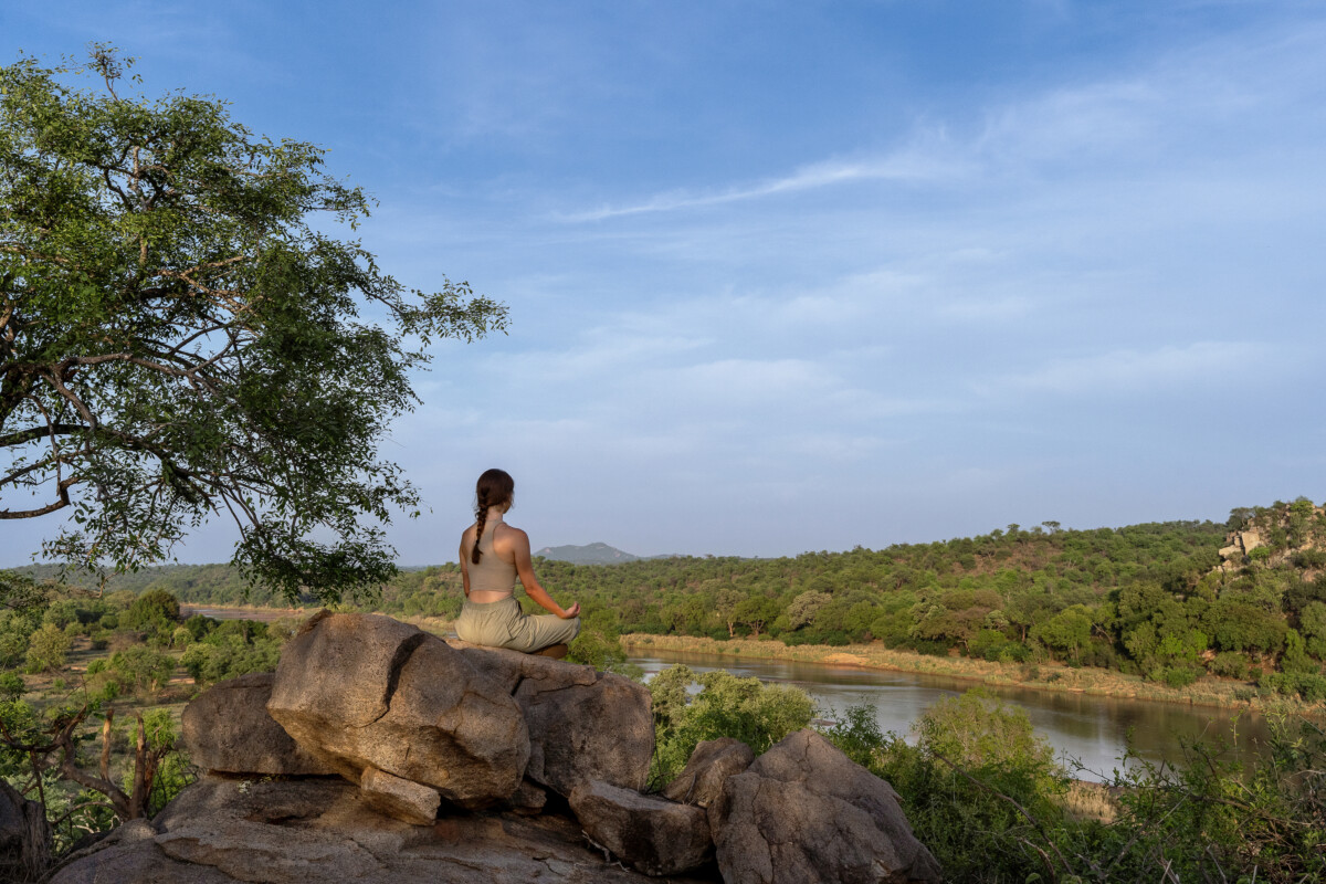 Daily flows at Sashwa include yoga and meditation on the riverfront deck, walks into the bush with our guide to observe and learn, moments of silent reflection, and plant-based gourmet breakfasts, lunches, dinners, and snacks designed to nurture the body, mind, and soul. Afternoons are for game drives across the savannah, encountering elephants and giraffes, and pausing with a quiet sunset drink as the sky turns gold.