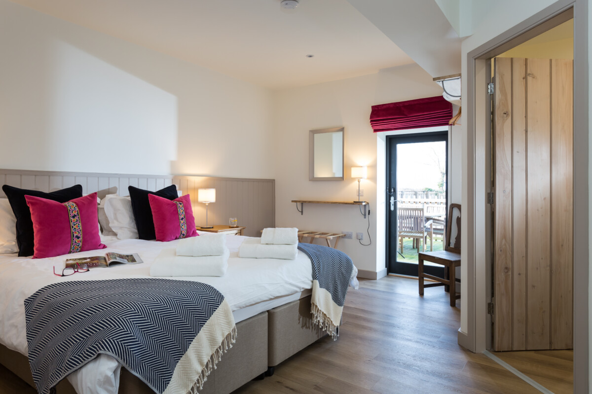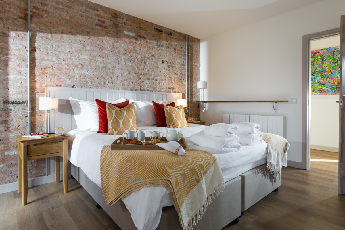 The Barn is a newly renovated Grade II* listed building. Original beams and exposed brickwork add rustic charm, while modern artwork, vibrant accents of colour, and Scandi-inspired minimalism bring a fresh, contemporary aesthetic. The property comfortably sleeps up to 12 guests, with flexible bedroom arrangements — each room can be set up as 2 singles or 1 super king double bed. Four bedrooms have en-suites, while two share a bathroom.