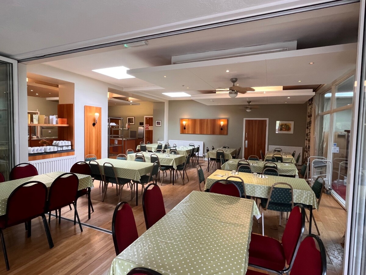 Kitchen and Dining roomThe kitchen is run by centre staff where they will create and serve all your meals, you will be situated in the dining room that can seat up to 74 people across multiple tables.