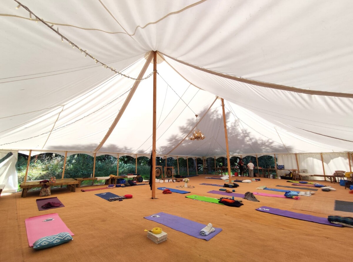 It makes a great space for yoga/well-being/meditative/nature/forest bathing retreats, and is ideal for arts and crafts activities too. (We host a successful Craft Weekend retreat twice a year). Set in a peaceful woodland, full of birdsong, and wildflowers; we have accommodation in yurts, a large bell tent, and a tipi, for up to 40 people, with the option of bringing your own tents or camper vans too, (max 50 staying on-site). Plus a large marquee that can seat up to 100.