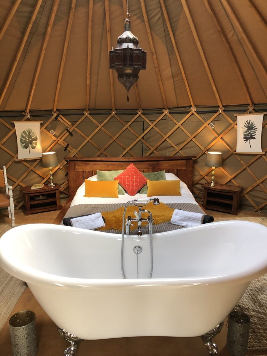 1 yurt with internal bathtub and private terrace with amazing mountain views, private external bathroom.