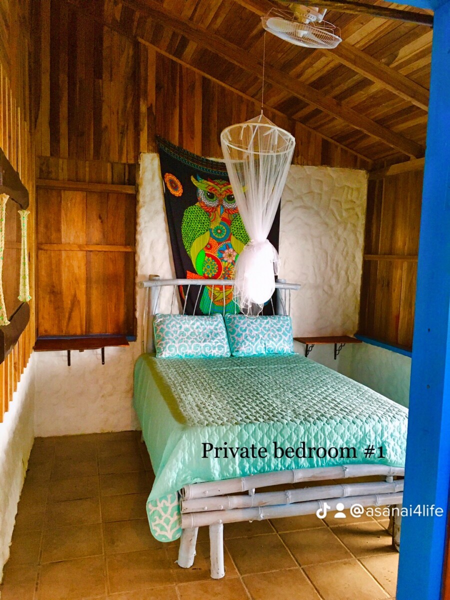 #1 has 3 private bedrooms, private bathrooms, private corridors, parking, Mountain views, ceiling fans, full-size beds, and a private garden area