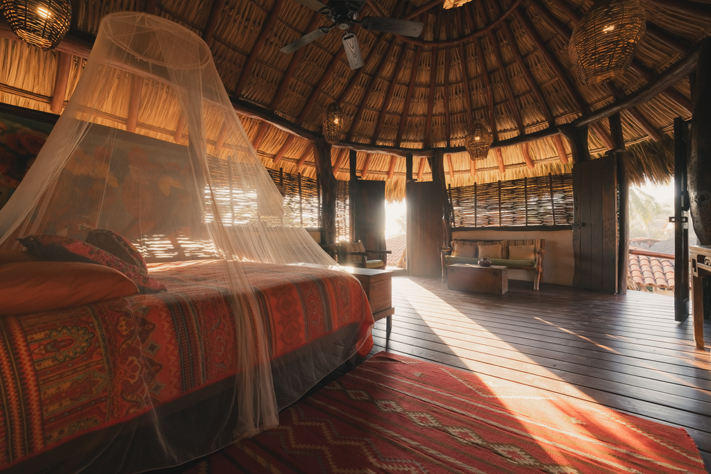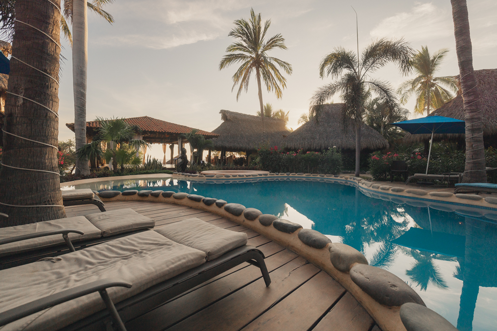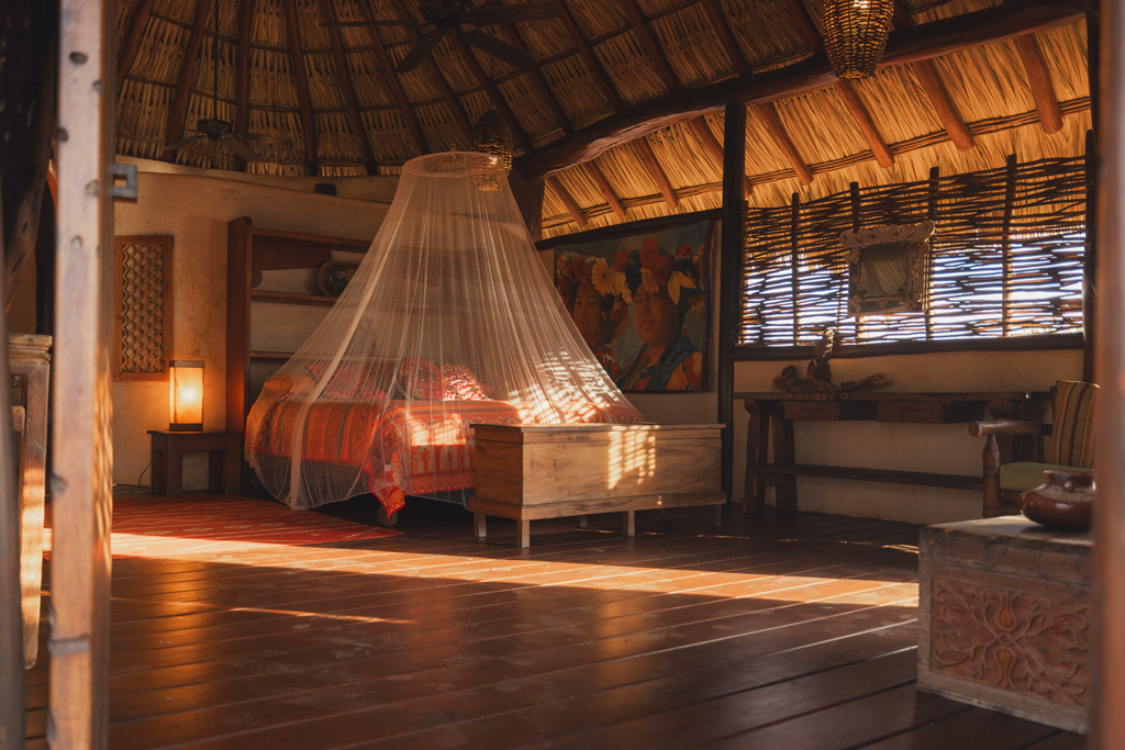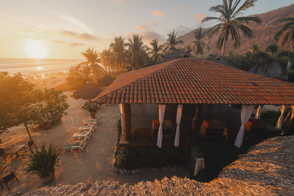 The property spans beautifully landscaped tropical grounds nestled between the Sierra Madre mountains and the Mexican Riviera. Its centerpiece is 12 bespoke artisan bungalows, each hand-built with indigenous palapa roofs, elegant interiors, and luxurious details such as pillow-top beds. These private bungalows provide a perfect balance of rustic charm and modern comfort, offering guests a tranquil refuge for rest and rejuvenation.