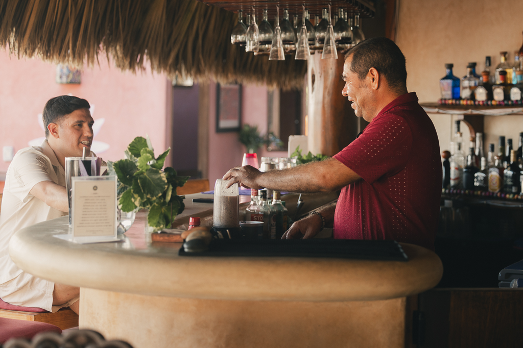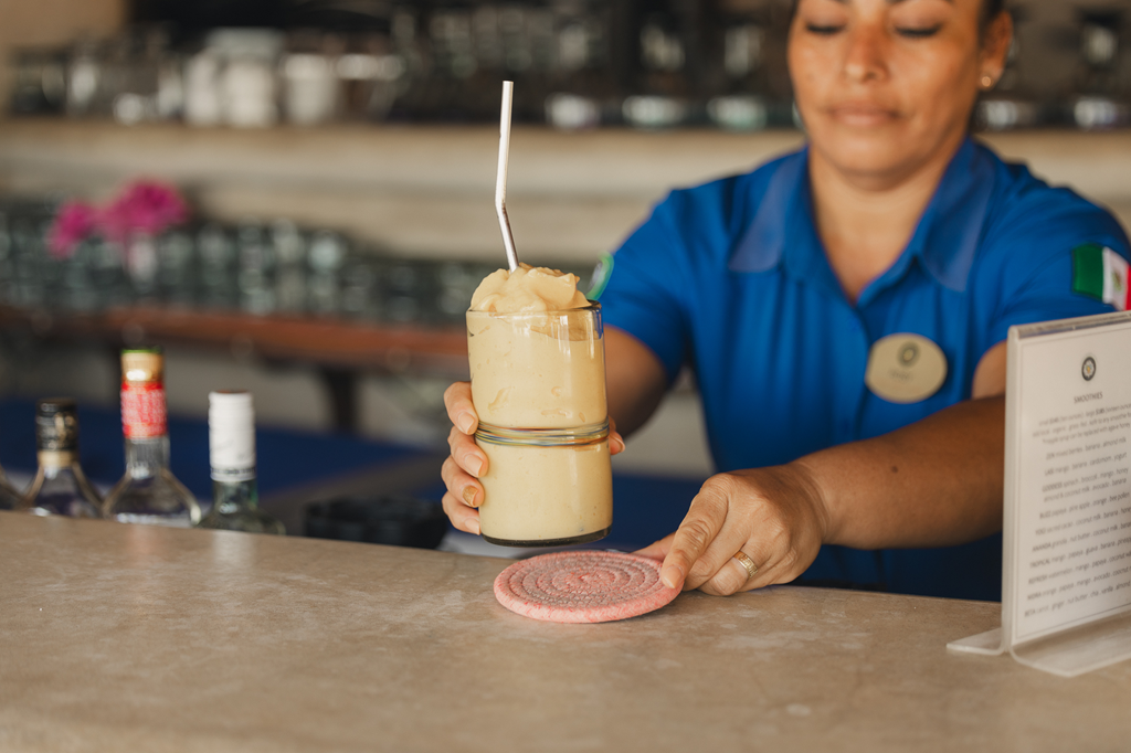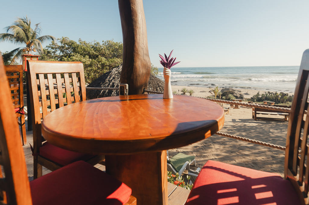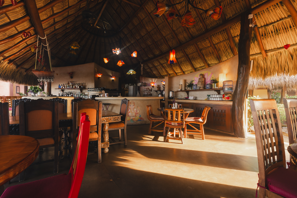 Guests enjoy vibrant, health-focused dining at the on-site restaurant, where intercontinental fusion cuisine showcases fresh-caught seafood, vegetarian specialties, and Latin American flavors. The beachfront dining space includes both sand-level seating and an upper terrace cantilevered over the ocean. A boutique shop further enhances the guest experience, offering artisan crafts, jewelry, and high-quality yoga apparel.